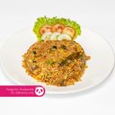 For ref only: အသား၊ ကြက်ဥ၊ ပဲငံပြာရည်၊ ကြက်သွန်ဖြူ၊ အသီးအရွက် နှင့် ဟင်းခတ်အမွှေးအကြိုင်တို့ပါဝင်သော ထမင်းကြော်