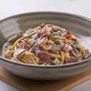 For ref only: A classic Italian dish with creamy, seaside clam, rich sauce made with eggs, brown butter and black pepper