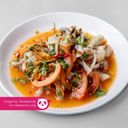 For ref only: Salad made with cuttlefish, chili, lime, tomato, onions, fish sauce and coriander