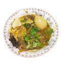 For ref only: Myanmar traditional thin rice noodle made with fish, beans, onions, lemongrass, egg and seasonings