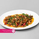 Dish cooked with minced meat, chili, basil leaves and spices