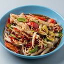 For ref only: Pounded salad made with rice noodles, garlic, chili, lime, tomato and fish sauce