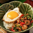 For ref only: Stir-fried Thai dish cooked with Thai basil,assorted pork and a savory combination of seasonings