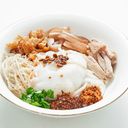 For ref only: Sticky rice noodle in boiled tofu paste topped with chili oiled and spring onion
