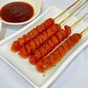 For ref only: Mala hot dog topped with a spicy, numbing sauce, delivering a bold and savory flavor