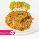 For ref only: Fried rice made with meat, egg, green pea, carrot, cauliflower, onions, garlic, soy sauce and seasonings