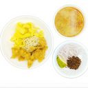 For ref only: Burmese popular breakfast food which is rice flat noodles in fish soup paired with toppings
