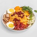 For ref only: Salad made with snow fungus, onion, baked bean powder, chili and garlic oil