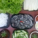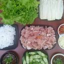For ref only: A type of Asian dish served with grilled chicken and rabbit, lettuce, garlic, chili paste, and green chili