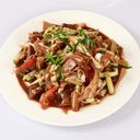For ref only: A savory and spicy salad with assorted pork cuts, tossed with onions, chili, tomatoes, and a tangy dressing