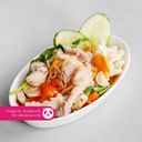 For ref only: အရိုးထုတ်ထားသောကြက်ခြေထောက်ကိုနံနံပင်၊ ငရုတ်သီးစိမ်းတို့ဖြင့်ထောင်းထားသောအဆာပြေအစားအစာ
