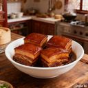 For ref only: ဝက်သုံးထပ်သား၊ သကြား၊ ဂျင်း၊ ကြက်သွန်ဖြူ၊ ကြက်သွန်နီ၊ ပဲငံပြာရည် နှင့် ဟင်းချက်ဝိုင်တို့ဖြင့် ချက်ပြုတ်ထားသော အသားပေါင်းဟင်းပွဲ