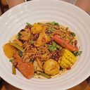 Mala spicy chicken noodles salad with purified drinking water