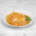 ကြက်ဥ၊ ကြက်သား၊ ကြက်သွန်နီ နှင့် အုန်းနို့ဟင်းရည်ဖြင့်ချက်ထားသော ခေါက်ဆွဲ