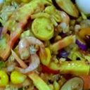For ref only: ရှောက်သီး၊ ဂေါ်ဖီ၊ ငရုတ်သီးနှင့် ကြက်သွန်နီတို့ဖြင့် သုပ်ထားပါသည်