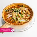 For ref only: အသီးအရွက်၊ ကြက်သား၊ မြီးရှည်ခေါက်ဆွဲနှင့် ပဲပုပ်နှစ်တို့ပါဝင်သည့် မြေအိုးဟင်းရည်ခေါက်ဆွဲ