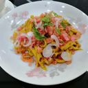 For ref only: အစုံကိုကြက်သွန်နီ၊ ငါးငံပြာရည်၊ ခရမ်းချဥ်သီး၊ ပဲမှုန့်နှင့် နံနံပင်တို့ဖြင့်သုပ်ထားသောအသုပ်